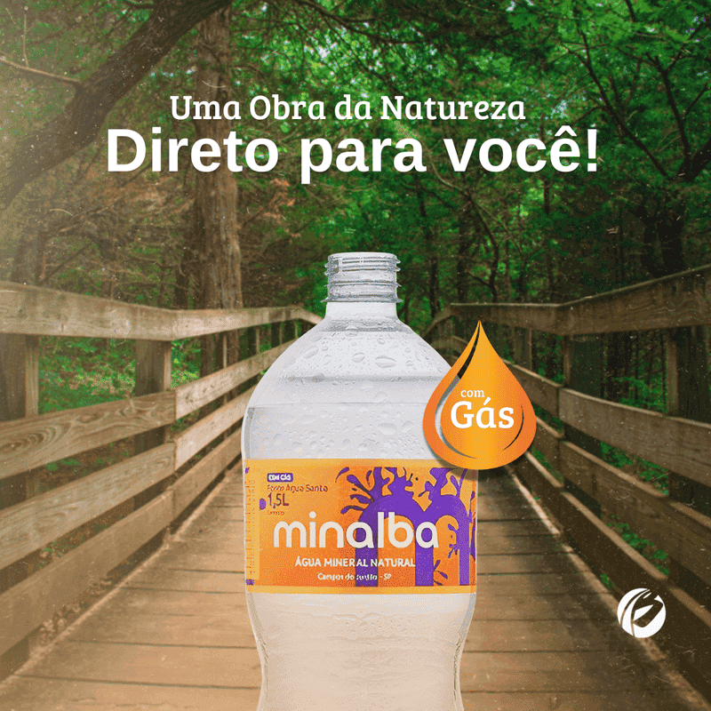 Proveniente da Fonte Água Santa, em Campos do Jordão - SP. A Água Mineral com Gás Minalba possui em sua água um padrão internacional e um processo de gaseificação perfeito, eletronicamente testado.