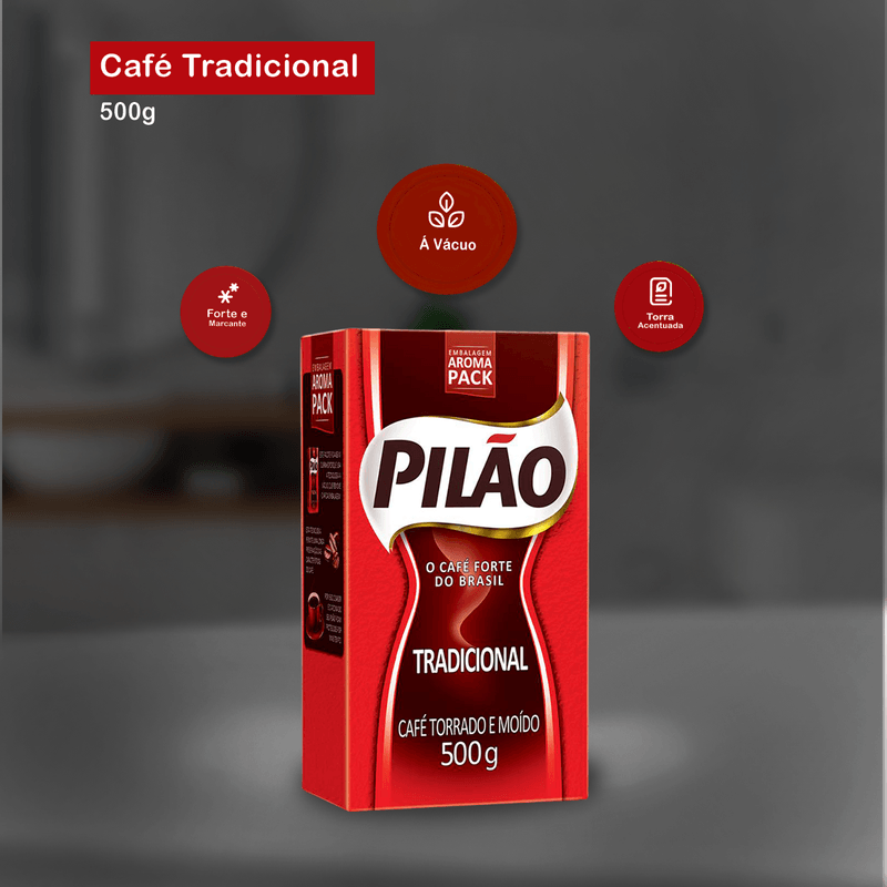 O Café Pilão Tradicional tem um ponto de torra acentuado e um processo de moagem fina e uniforme, que garantem e preservam seu sabor forte e encorpado. É perfeito para o seu dia a dia.
