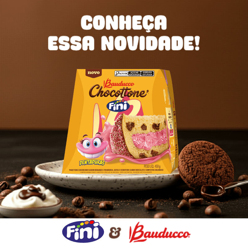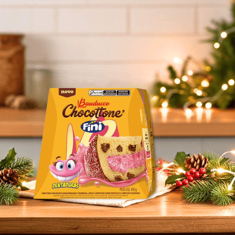 O Chocottone Maxi Dentaduras Bauducco 450g é uma versão divertida e irresistível do tradicional panetone, criada em parceria com a Fini para trazer inovação e sabor à mesa.