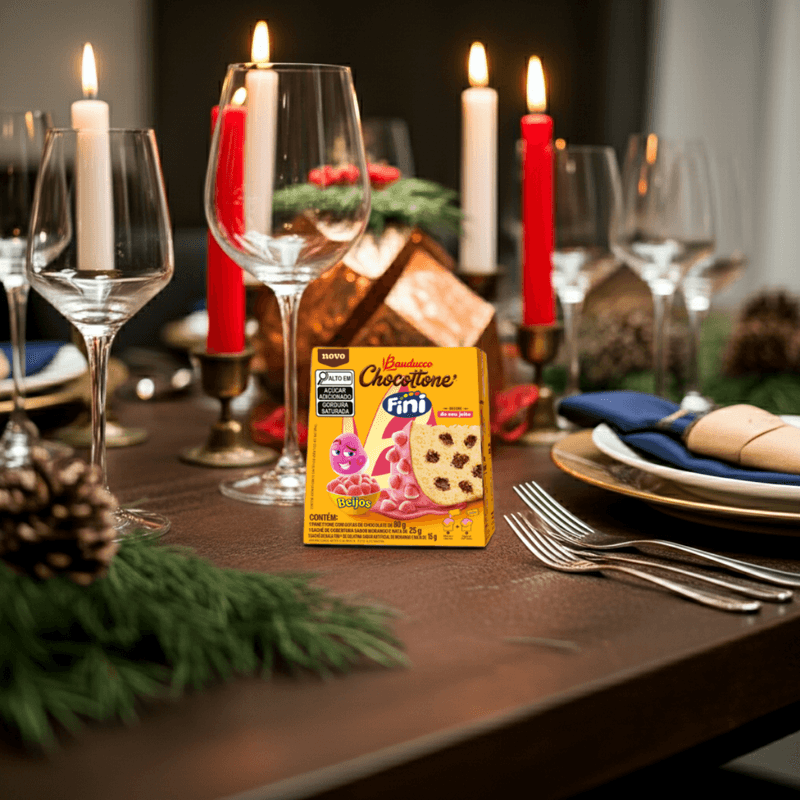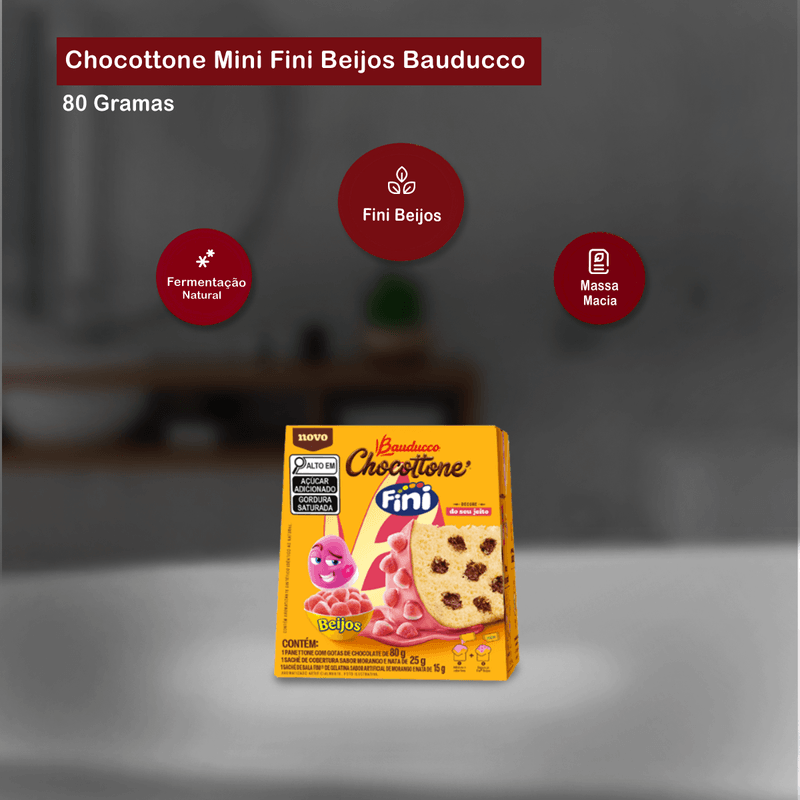Desenvolvido especialmente para os apaixonados por doces diferentes e divertidos, ele traz uma massa fofinha e macia, característica dos panetones e chocottones da marca, recheada com um creme sabor morango com nata, inspirado diretamente nas balas clássicas Fini Beijos.