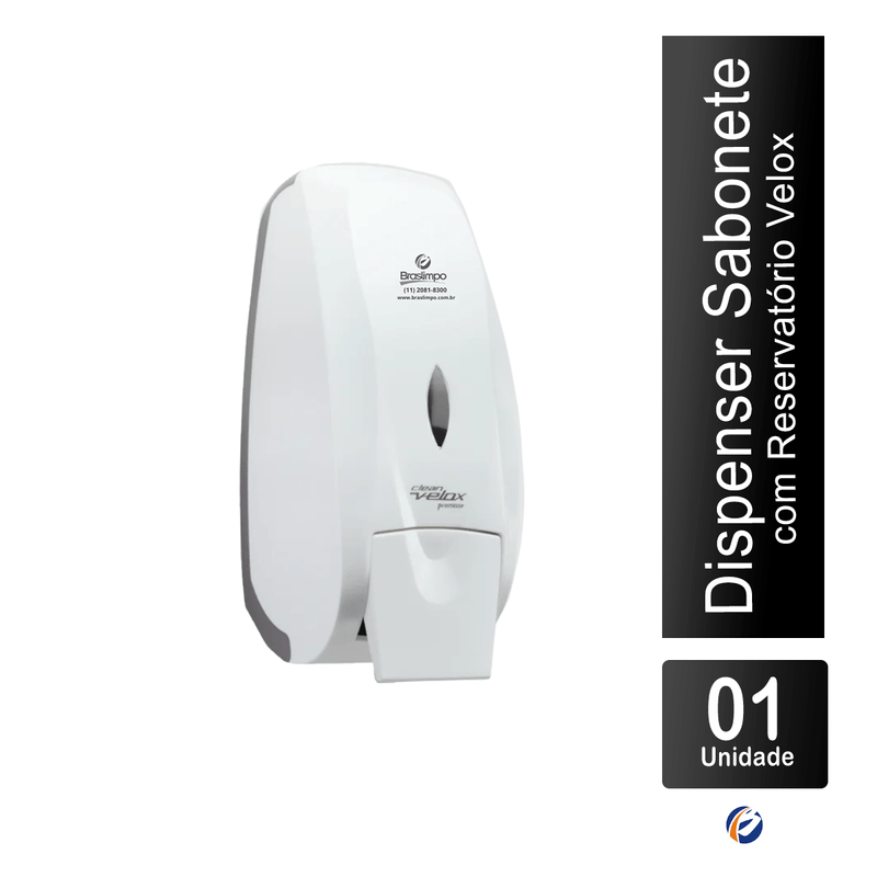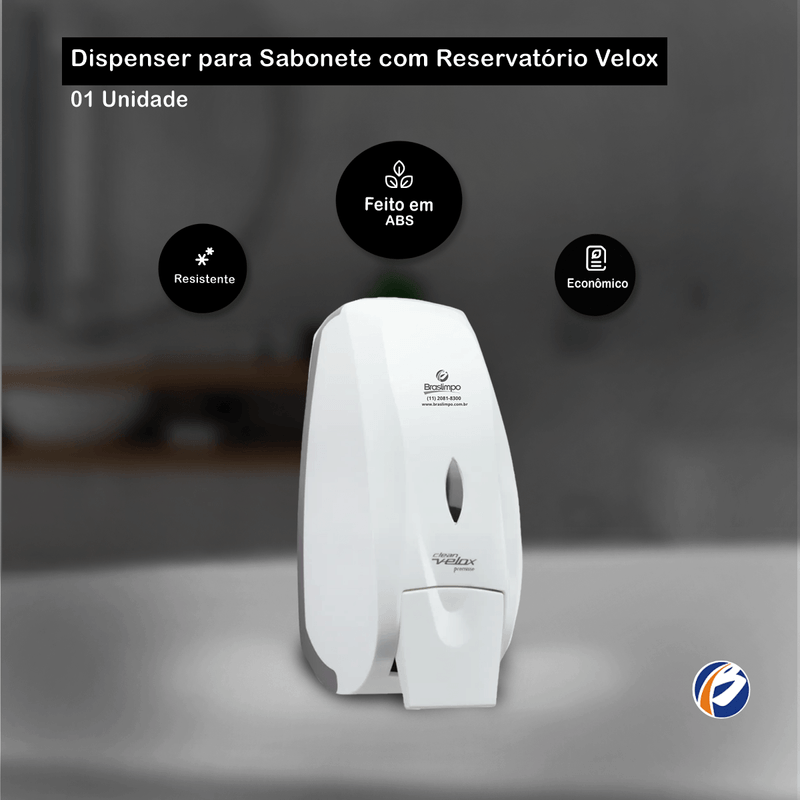 Dispenser de Sabonete com Reservatório 800ml Branco Velox Premisse com Logo Braslimpo