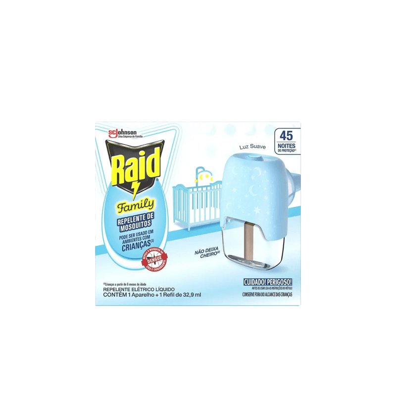 A versão Family pode ser utilizada em ambientes com crianças e se diferencia por contar com luz suave, que não incomoda durante a noite, e por não deixar cheiro, tornando o uso mais confortável em quartos e áreas de descanso. O refil líquido de 32,9 ml proporciona até 45 noites de proteção, considerando o uso médio de 8 horas por noite.
