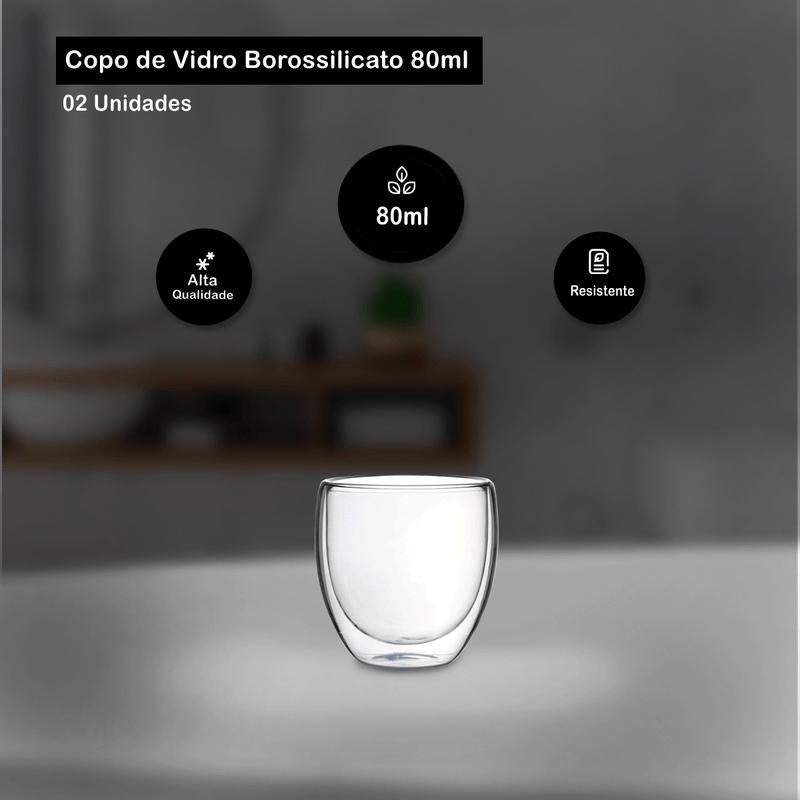 Kit 02 Copos de Vidro Borossilicato 80ml Nobre