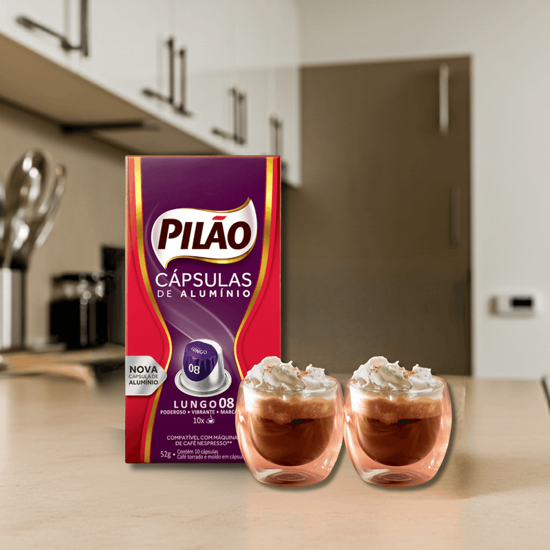 Alimentos e BebidasKit Cápsula de Café Lungo 8 10x5,2g Pilão + 02 Copos de Vidro Borossilicato 80ml Nobre