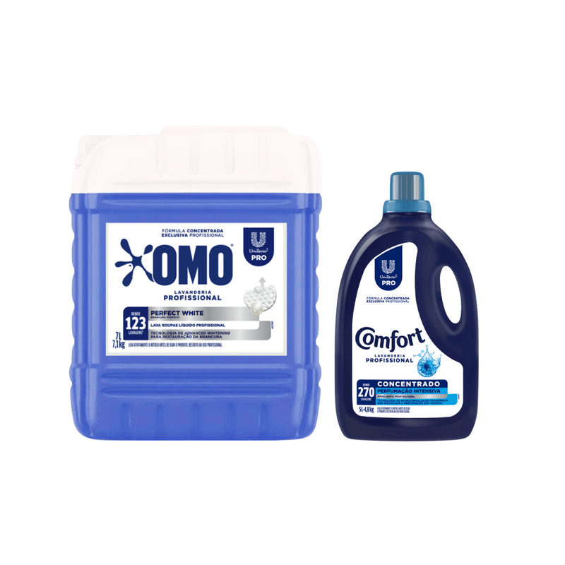 Kit Lava Roupas Líquido Perfect White 7L Omo + Amaciante Concentrado Profissional 5L Comfort