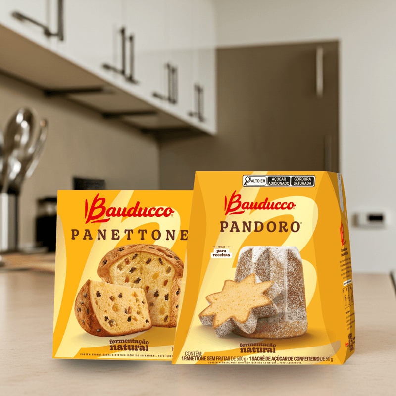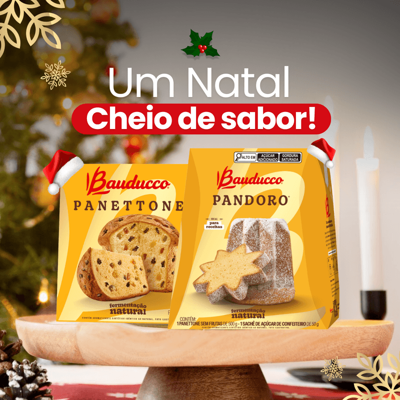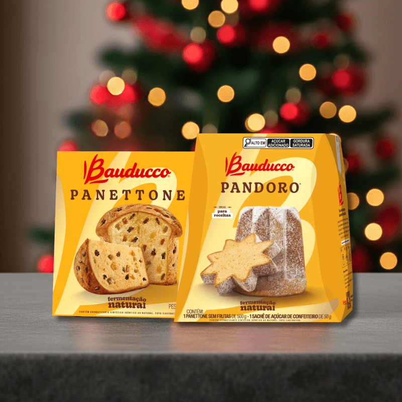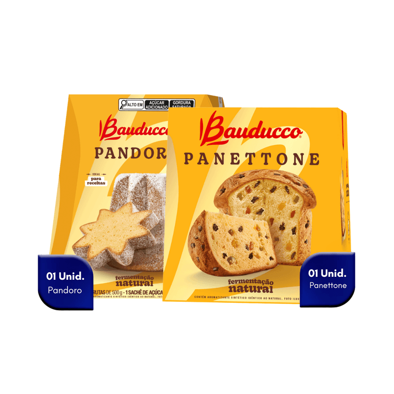Embalagem: 01 caixa do Pandoro 500g + 01 caixa do Panettone 400g Bauducco