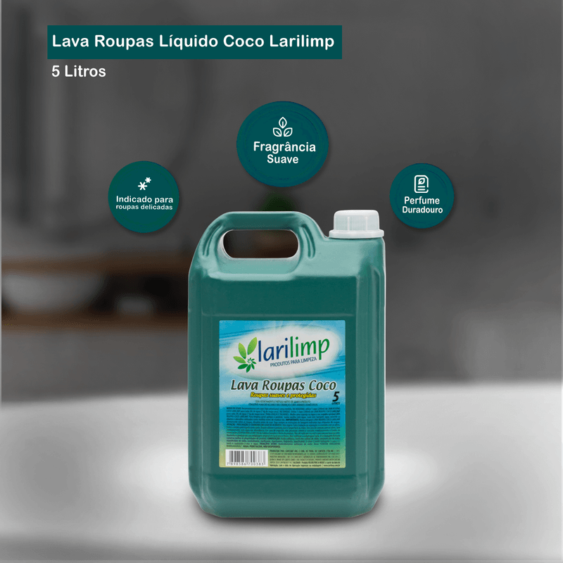 O sabão de roupa líquido Larilimp, traz tecnologia em sua formulação, removendo a sujeira sem agredir o tecido e fragrância com melhor fixação, mantendo suas roupas perfumadas por muito mais tempo. Indicado para roupas delicadas.