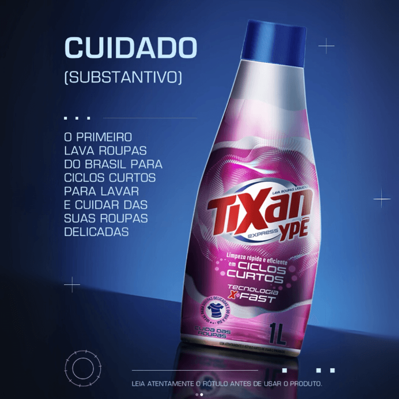 Se a sua prioridade é aliar rapidez, cuidado com as roupas e eficiência de limpeza, essa versão Tixan Ypê Express é pensada especialmente para isso. A dinâmica é ótima para quem quer manter as peças bem cuidadas, com praticidade e economia.