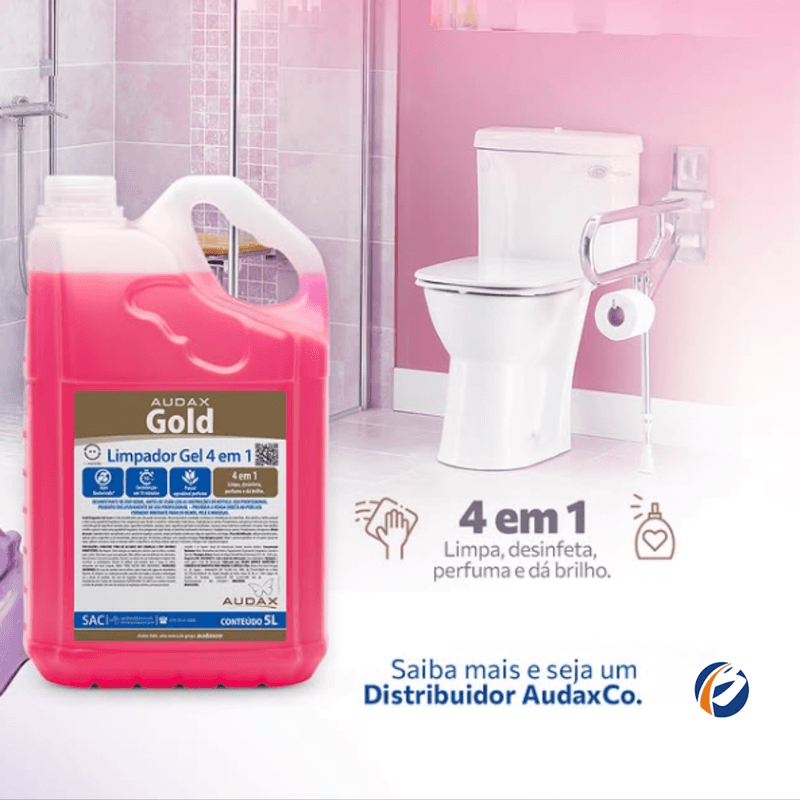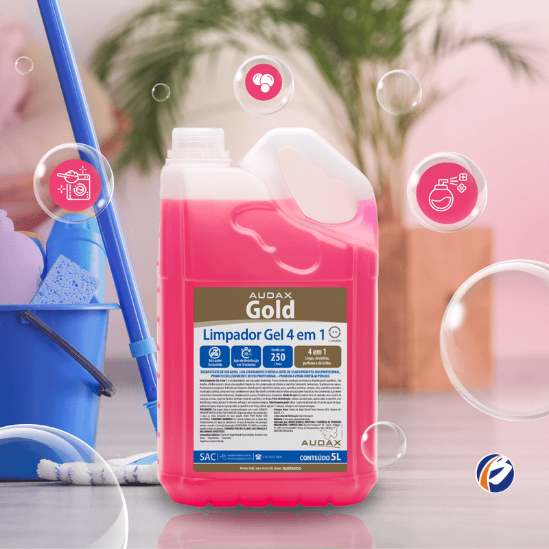 Gold Limpador Gel 4 em 1 é um poderoso limpador e desinfetante gelatinoso concentrado, garantindo excelentes resultados na limpeza e desinfecção de superficies.