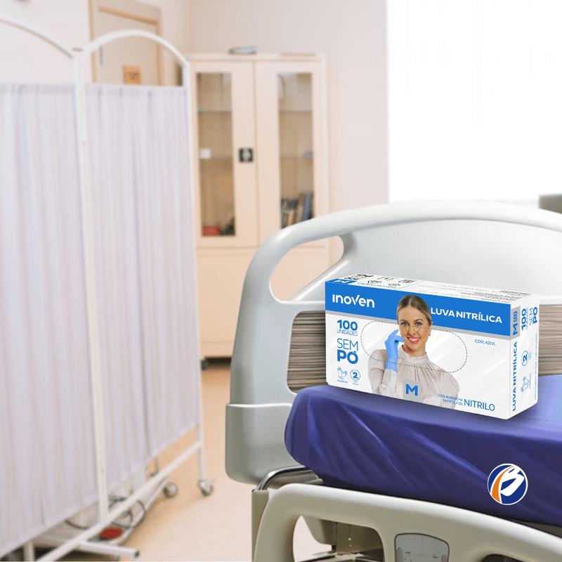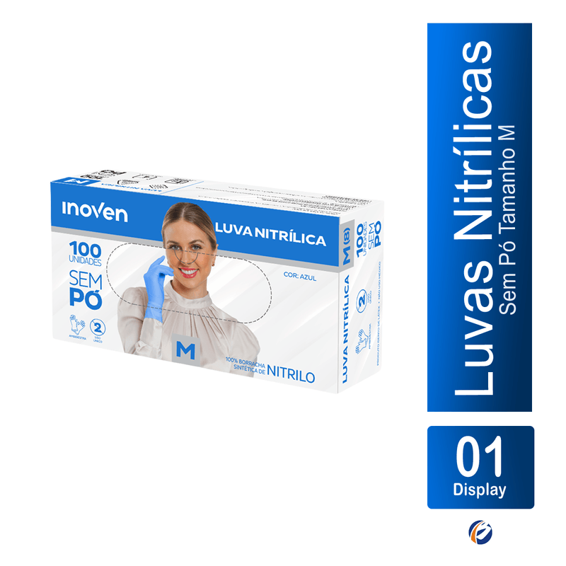 Luva Nitrílica sem Pó Azul M CA 45345 com 100 unidades Inoven