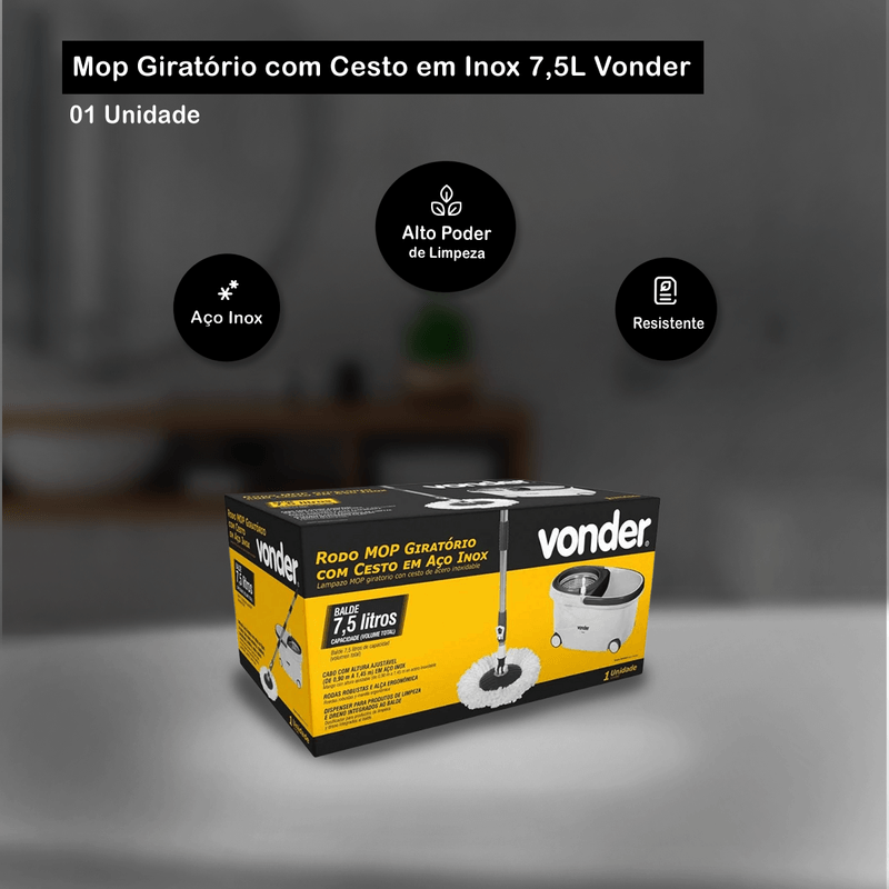 Mop Giratório com Cesto em Inox 7,5L Vonder