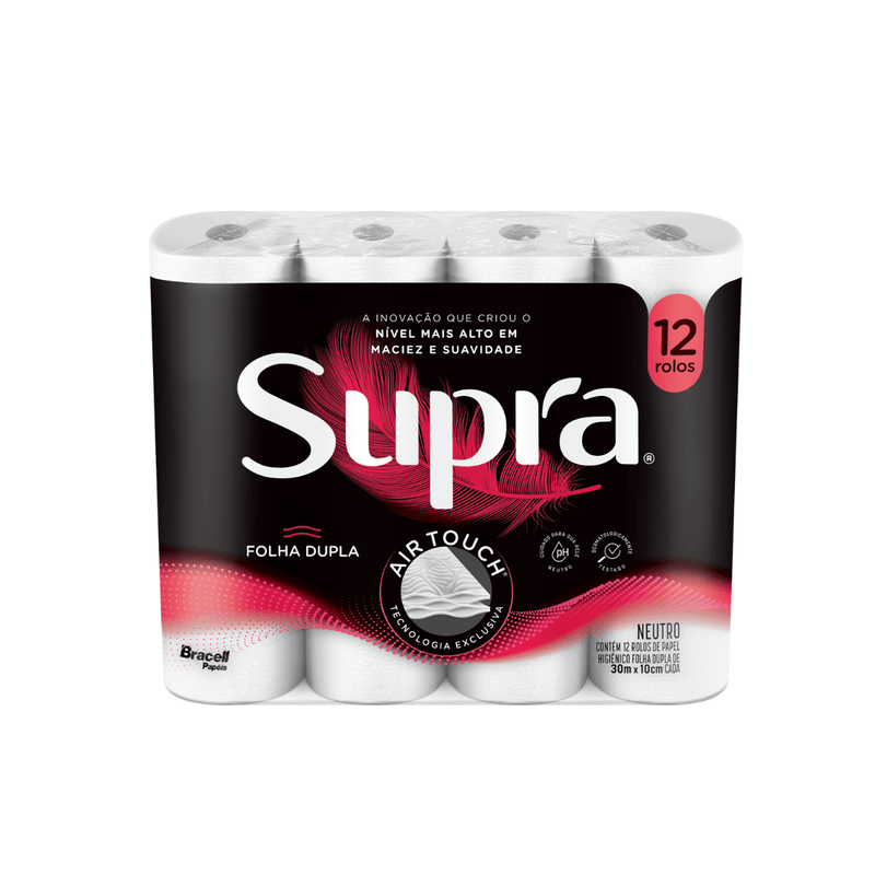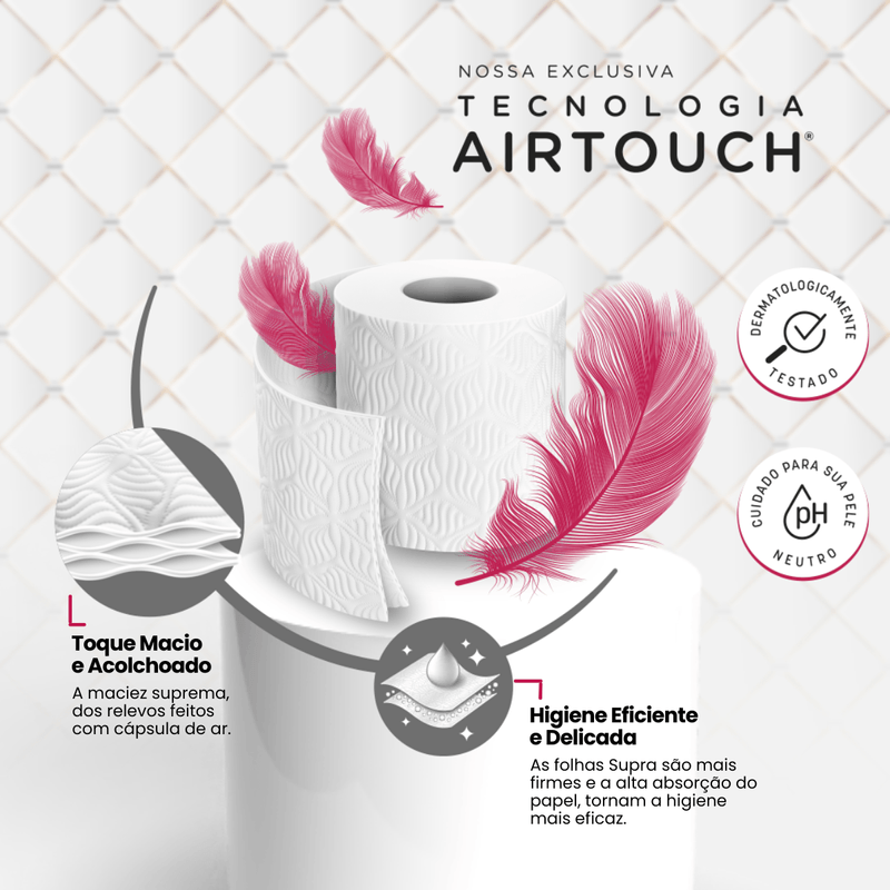A tecnologia Air Touch, exclusiva da linha Supra, cria relevos com pequenas cápsulas de ar distribuídas nas duas camadas do papel, o que proporciona uma sensação acolchoada ao toque, melhor absorção, sensação de secura e proteção contra ressecamento da pele
