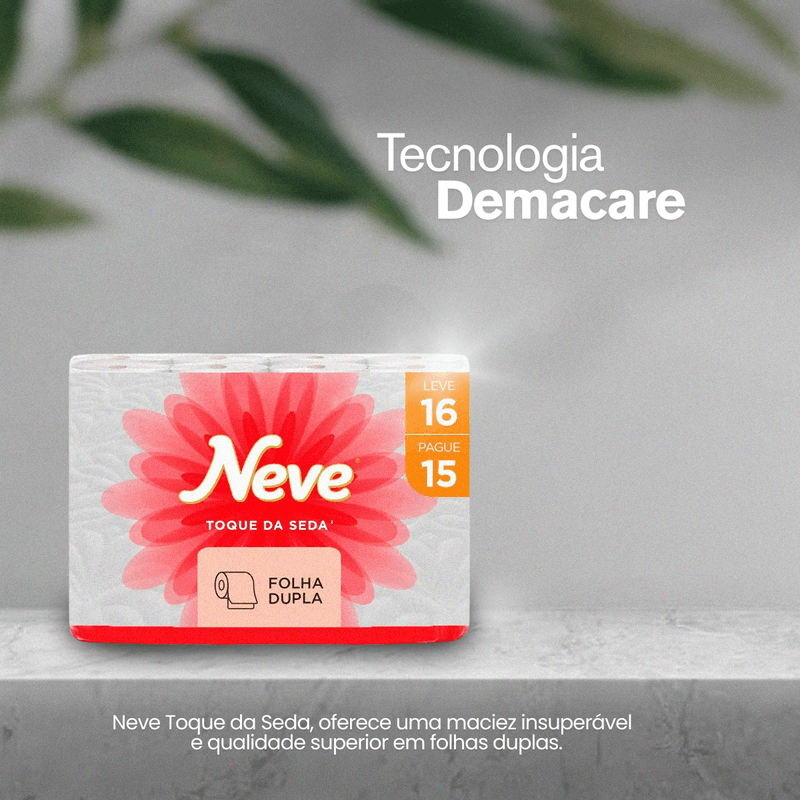 Neve Toque da Seda, oferece uma maciez insuperável e qualidade superior em folhas duplas. Todos os papeis higiênicos Neve contém tecnologia Dermacare, que mantém o PH natural da pele.