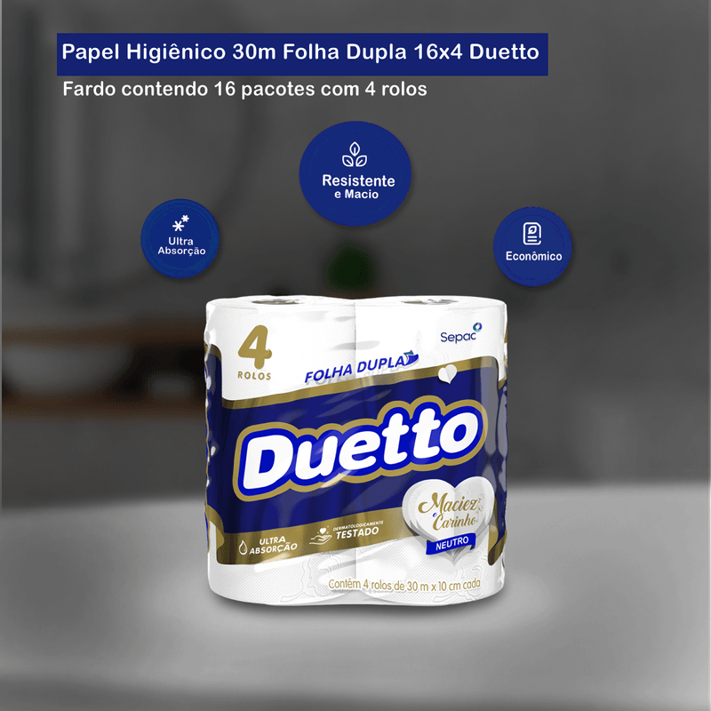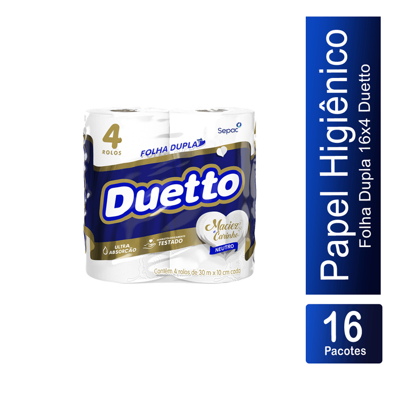 Papel Higiênico Folha Dupla Fardo 16x4 Duetto
