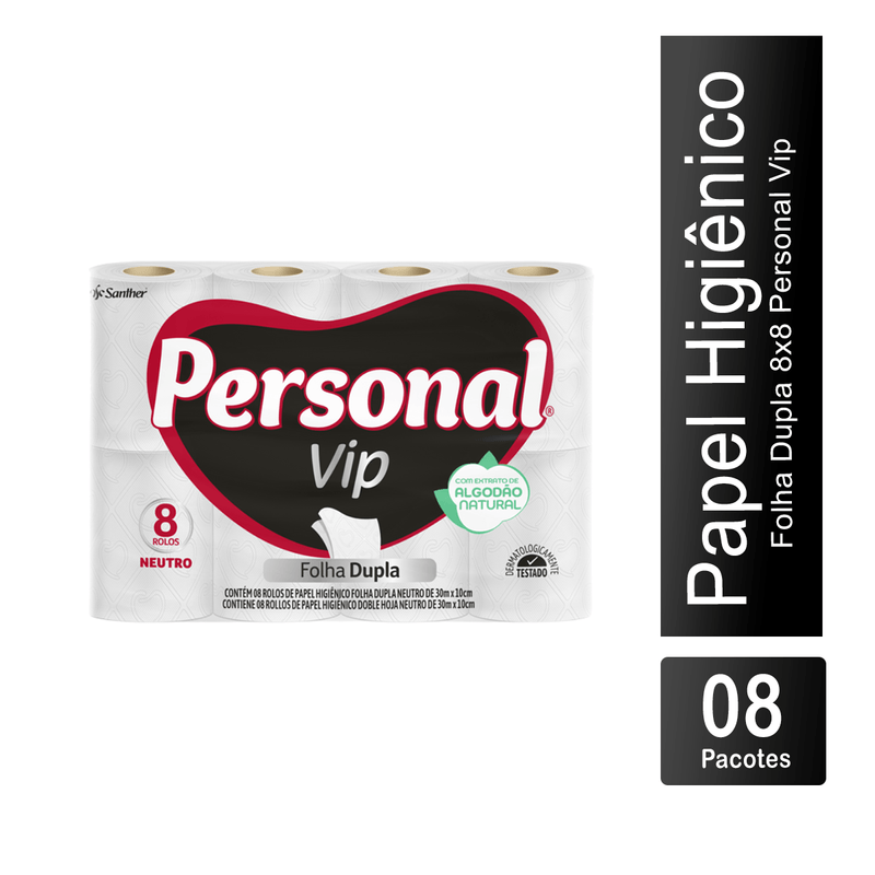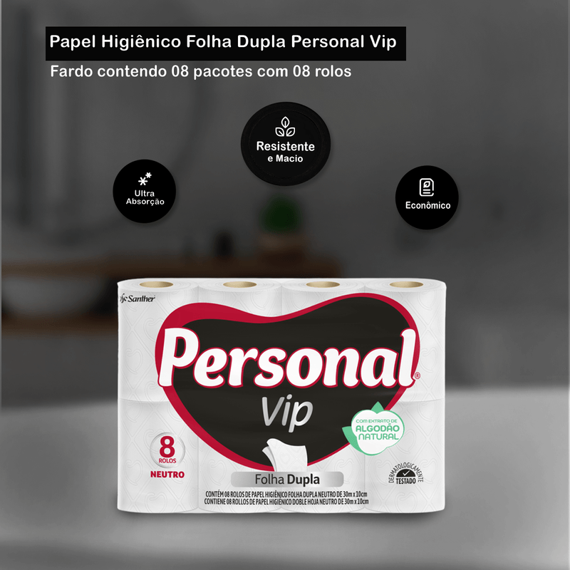 Papel Higiênico Folha Dupla Fardo 8x8 Personal Vip