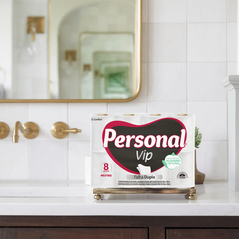 Chegou Personal® Vip, o novo papel higiênico folha dupla com a exclusiva Fórmula PróMaciez, que alia a nova textura com fibras naturais, extratos de algodão e argan, que possuem propriedades de maciez, cuidado e conforto.