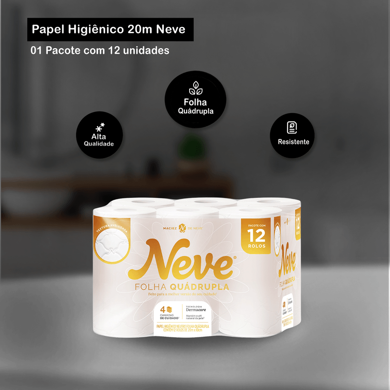 Papel Higiênico Folha Quádrupla 20m com 12 rolos Neve