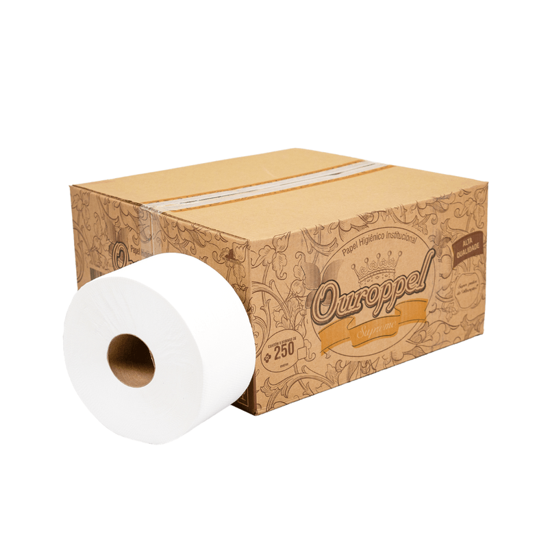 O Papel Higiênico Rolão Folha Dupla Premium 8x250m Ouroppel é desenvolvido para oferecer alto rendimento, maciez e resistência, sendo ideal para ambientes com grande circulação de pessoas.