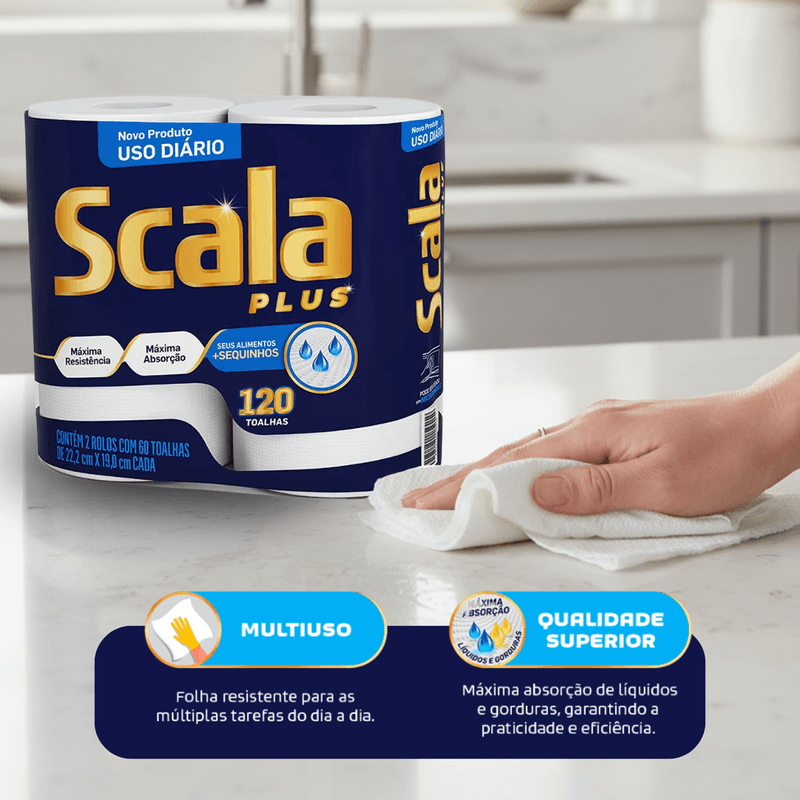 O Papel Toalha Scala Plus é ideal para trazer mais praticidade e higiene para o dia a dia. Produzido com 100% fibras de celulose, possui folha dupla, garantindo maior resistência e alta capacidade de absorção para diversas tarefas domésticas ou profissionais.