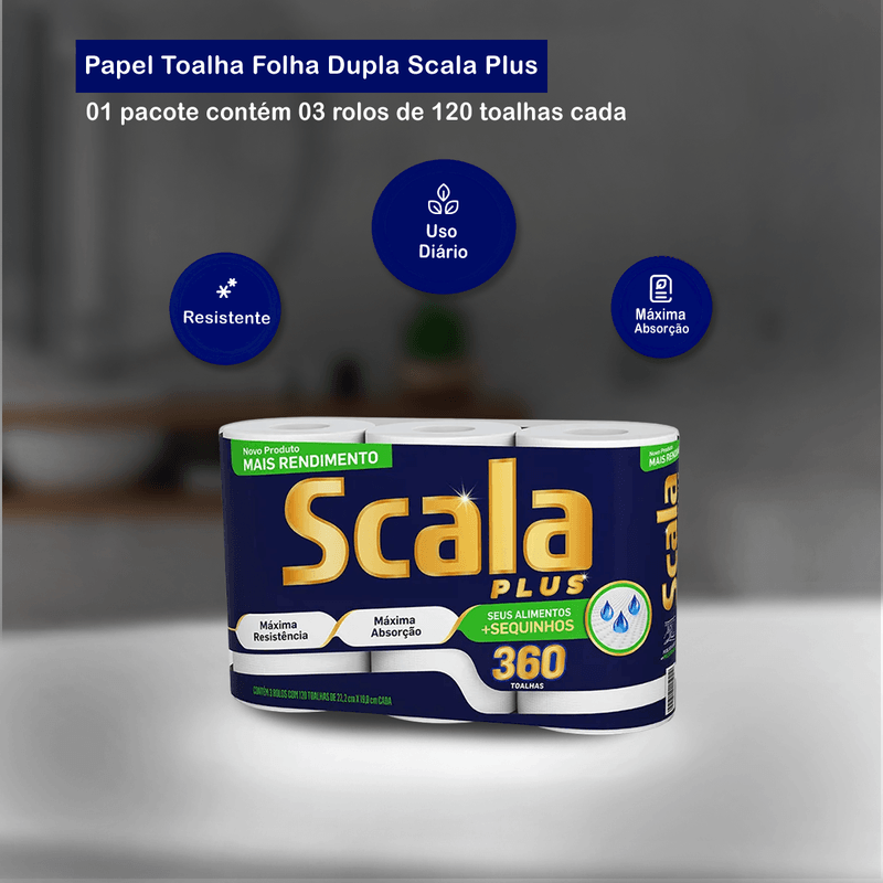 Papel Toalha Folha Dupla 3x120 Scala Plus