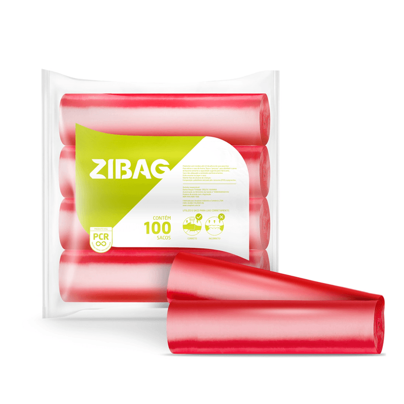 Saco para Lixo Médio Vermelho 100L com 100 unidades Zibag